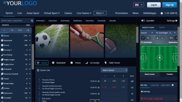 The sports betting platform includes a live sports match tracker for popular sports types including soccer, basketball, tennis, and more. All animations and actions are available across all devices, as well as various board views and multilanguage support.